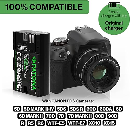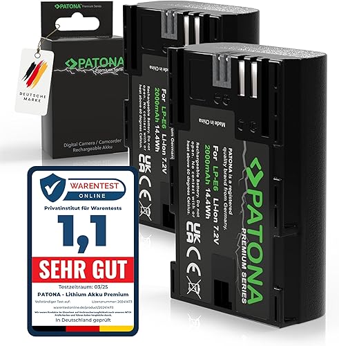 PATONA 2x PREMIUM LP-E6 Batteria 2400mAh compatibile con Canon EOS 5D Mark II III IV 5DS R R5 6D 7D 60D 60Da 70D 80D 90D XC10 XC15 5 6 7 60 70 80 90 D XC 10 15 WFT-E5 E7 LPE6 LP E6