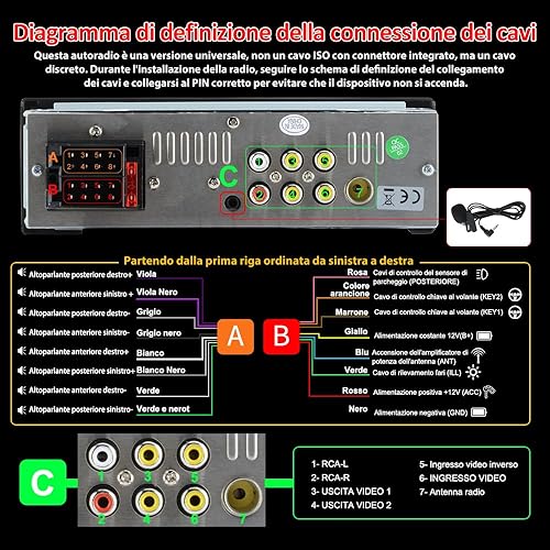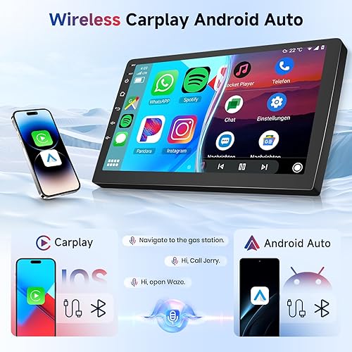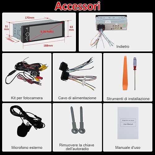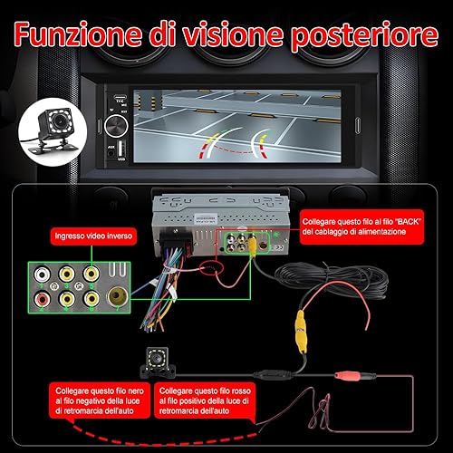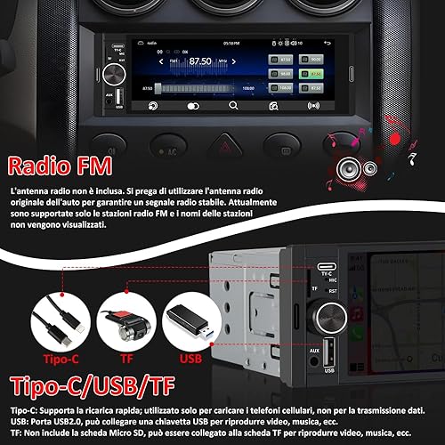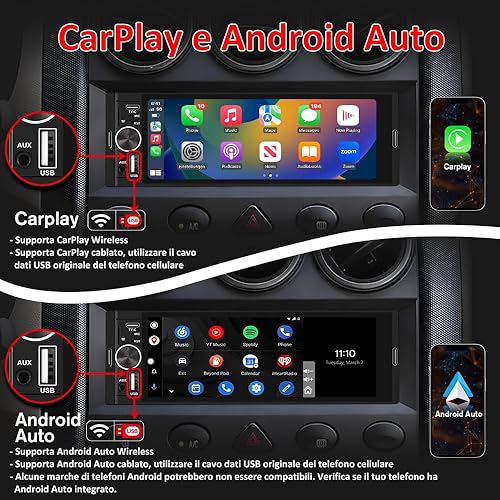 Hexinex Autoradio 1 DIN con schermo Wireless CarPlay e Android Auto FM Bluetooth AUX Tipo-C Telecamera posteriore