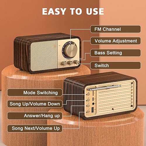Radio Nostalgiche, FM Radio con Connettività Bluetooth, Radio Vintage per Cucina e la Camera da Letto, Radio con Supporto per l'inserimento di Schede TF, Prese AUX e USB
