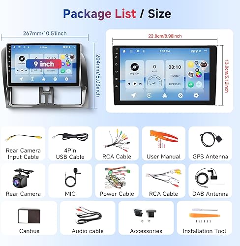 VECHTEL Autoradio 2G+64G Android 15 per Volvo XC60 2008-2013, 9' IPS HD 2.5D Schermo Tactile Stereo Auto co Carplay Android Auto senza Fili DAB GPS Wi-Fi Bluetooth HiFi Radio FM RDS Retrocamera