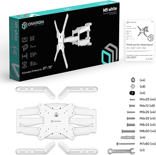 Supporto a Muro per TV da 40 a 75 pollici - Sostegno TV Muro con Peso fino a 45,5 kg - Piedistallo Televisore Universale con max VESA 600x400 mm/Supporto per Televisore Girevole M6L-W Bianco