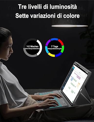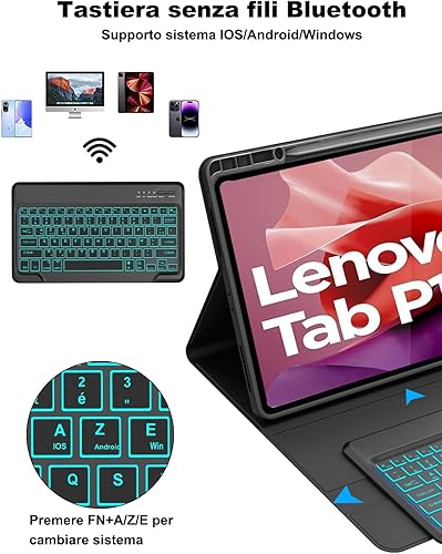 FOGARI Custodia Tastiera Bluetooth Retroilluminata per Lenovo P12 da 12,7 pollici (Nero, Classico)