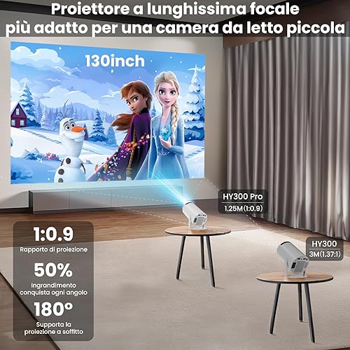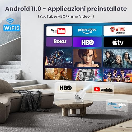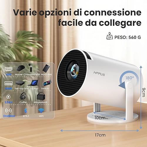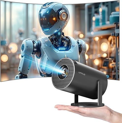 HIPPUS Mini Proiettore 4K Android 11 Portatile, WiFi 6 e Bluetooth 5.2, Rotazione 270° con Correzione Automatica Trapezio, Videoproiettore HD per Home Cinema e Intrattenimento, Bianco