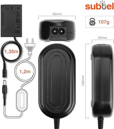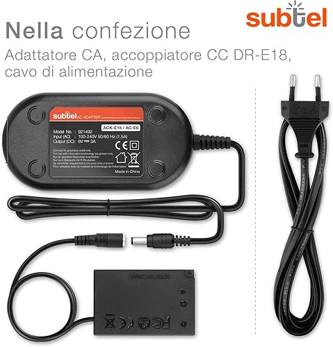 Alimentatore ACK-E18 Compatibile con ca. 3m + DC Coupler accu Adattatore, Alimentazione da Corrente di Rete Accoppiatore CC, Dummy Battery