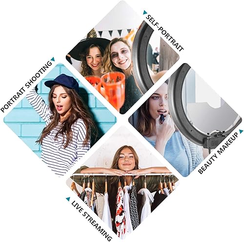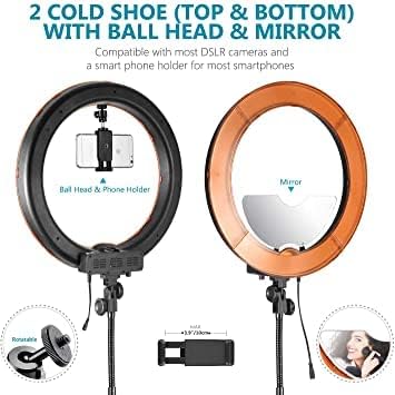 Neewer Anello a LED da 18 pollici, diametro esterno con doppio flash superiore/inferiore, specchio, supporto per smartphone, supporto per luce, tubo morbido, filtro colore per ritratto video (spina US