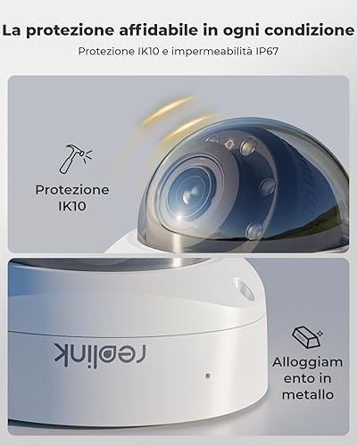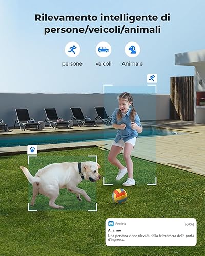 Reolink 4K PoE Telecamera Esterno, 5X Zoom Ottico, IK10 Antivandalo, Audio Bidirezionale, Faretti per Visione Notturna a Colori, Rilevamento di Persona/Veicolo/Animale, Time-Lapse, RLC-843A