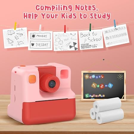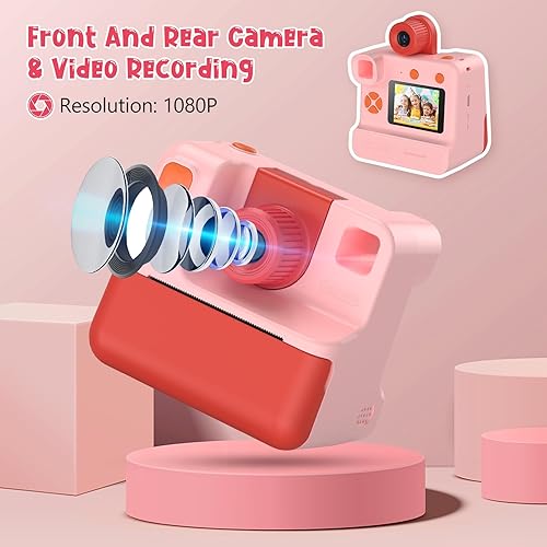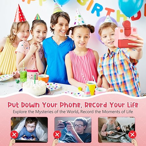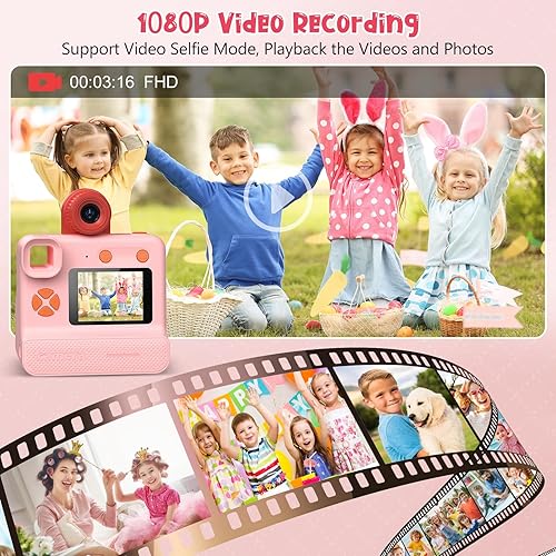 ponoseu Macchina Fotografica Bambini Istantanea, 1080P Digitale Fotocamera Istantanea Bambini, Regalo per Bambini dai 3-12 Anni, 32GB Scheda SD, 5 Penne Colorate (rosa)
