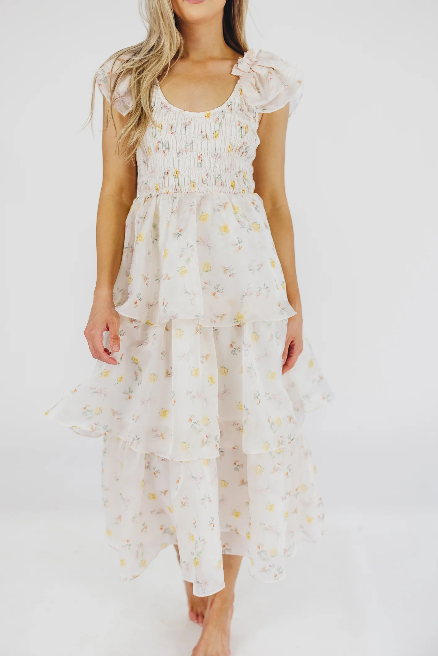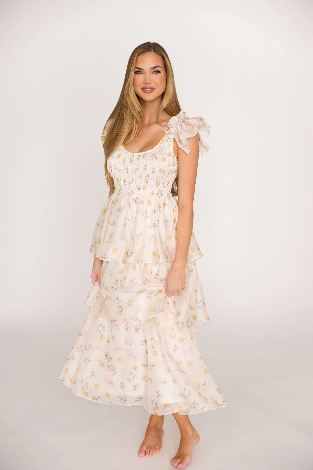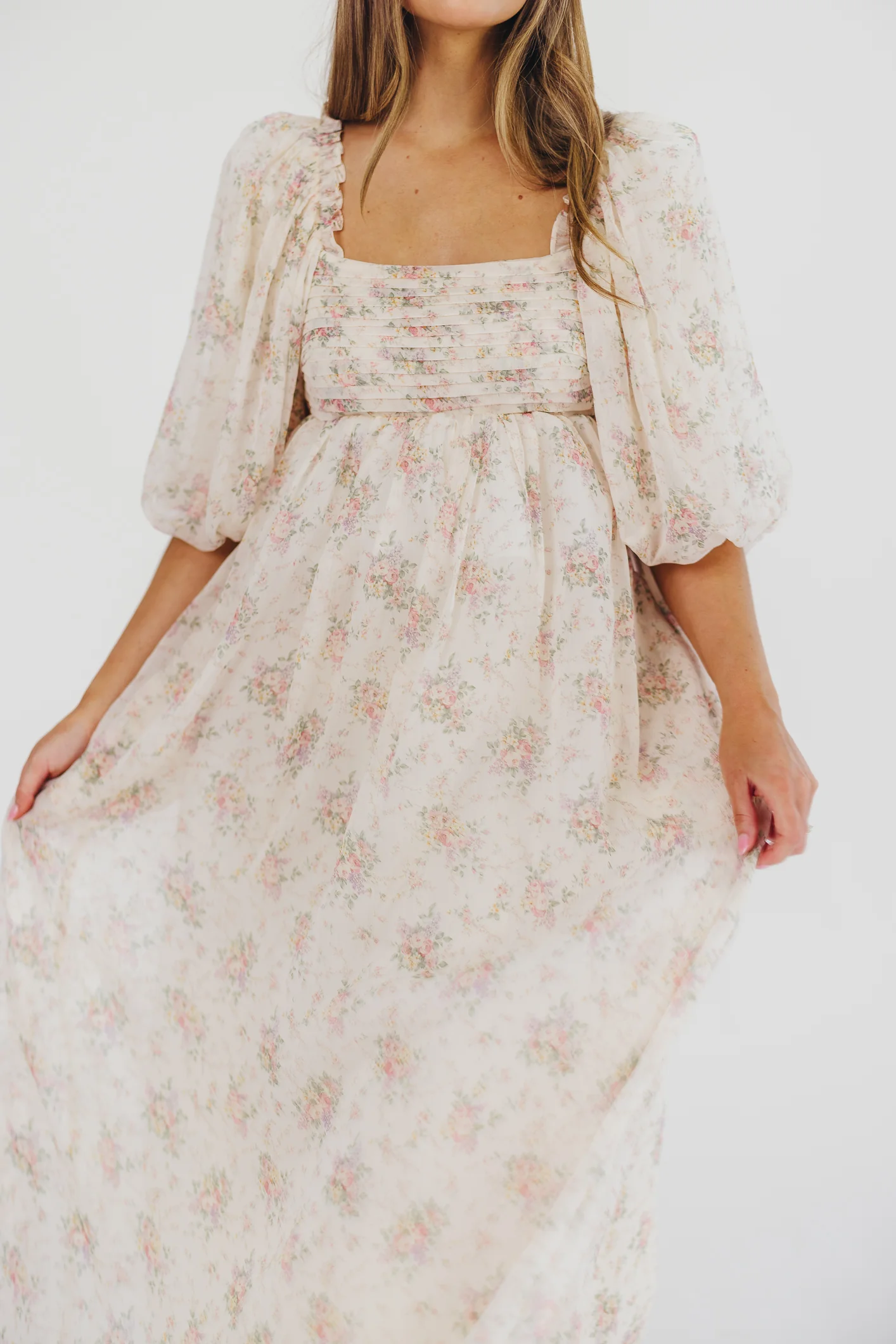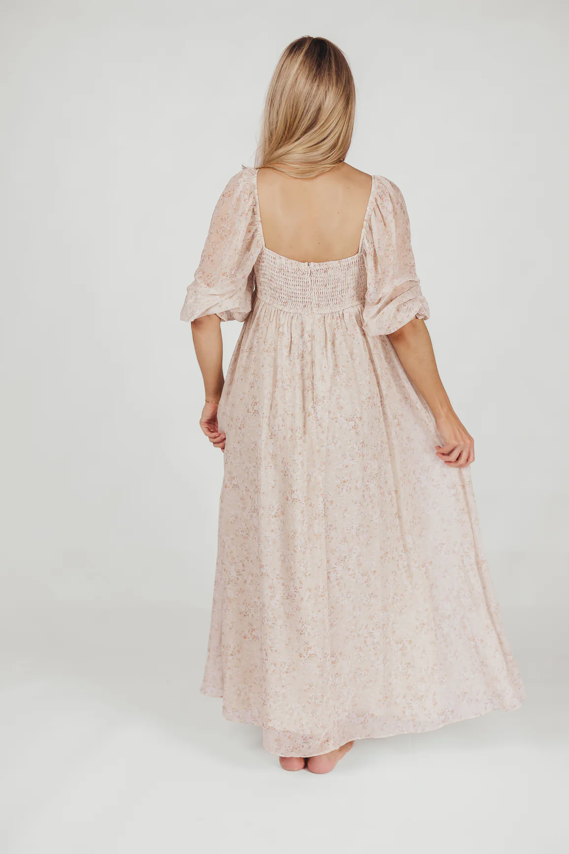 *New* Mona Maxi Dress with Smocking in Beige Floral - Bump Friendly & Inclusive Sizing (S-3XL)