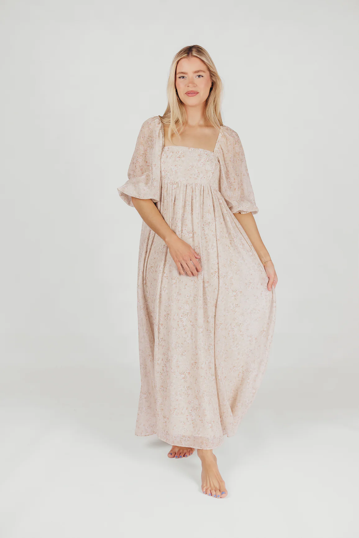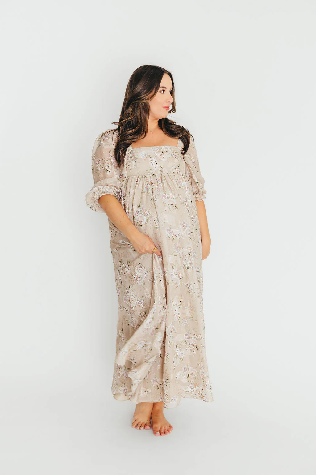 Harlow Maxi Dress in Taupe Floral - Bump Friendly & Inclusive Sizing (S-3XL)