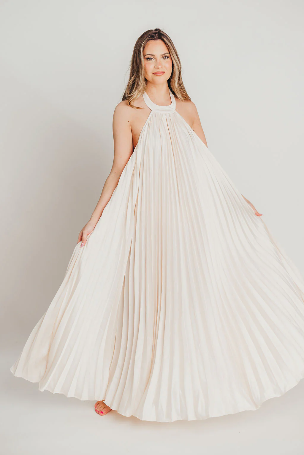 Maren Pleated Halter Maxi Dress in Cream - Bump Friendly