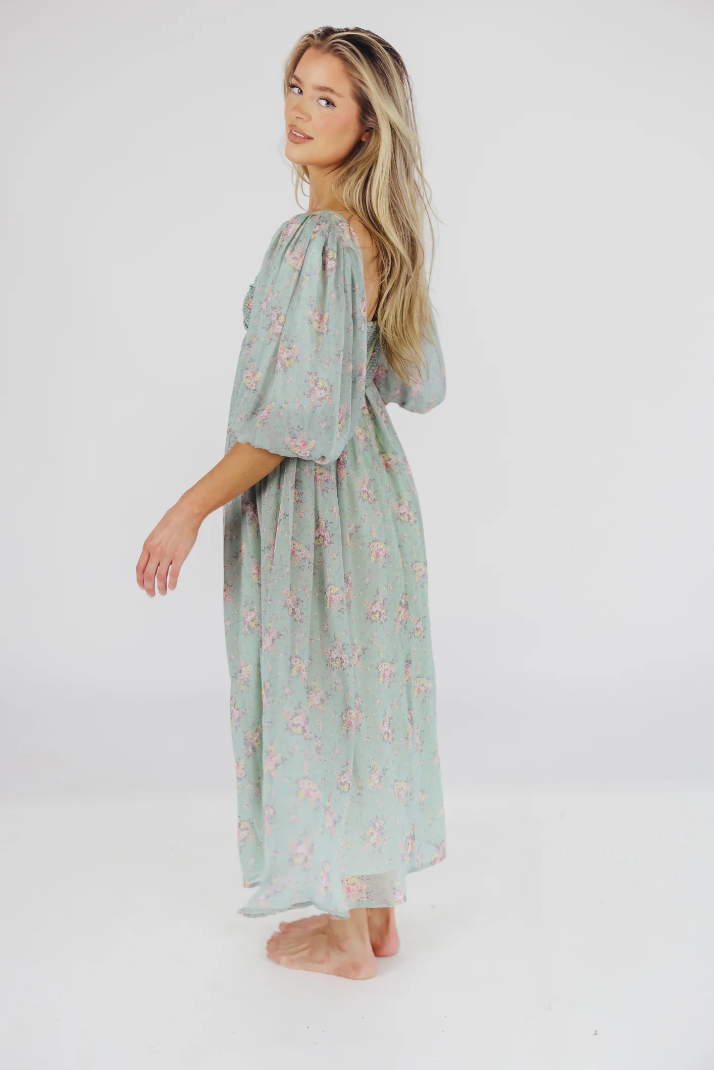Melody Maxi Dress in Turquoise Floral - Bump Friendly & Inclusive Sizing (S-3XL)
