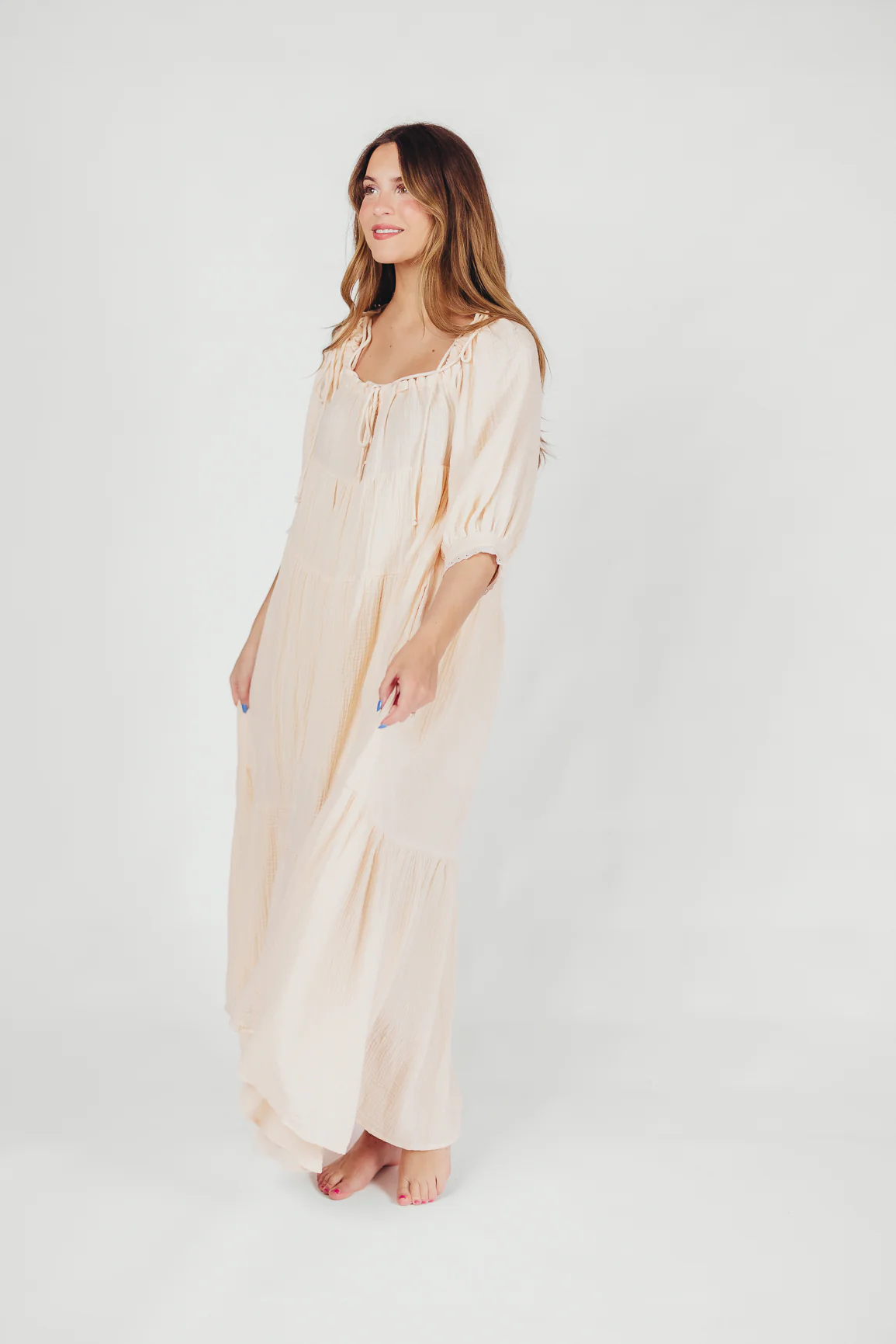 Goddess 100% Cotton Babydoll Maxi Dress in Blush - Bump Friendly