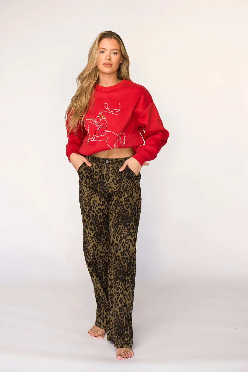 Rodeo Embroidered Pullover in Cherry