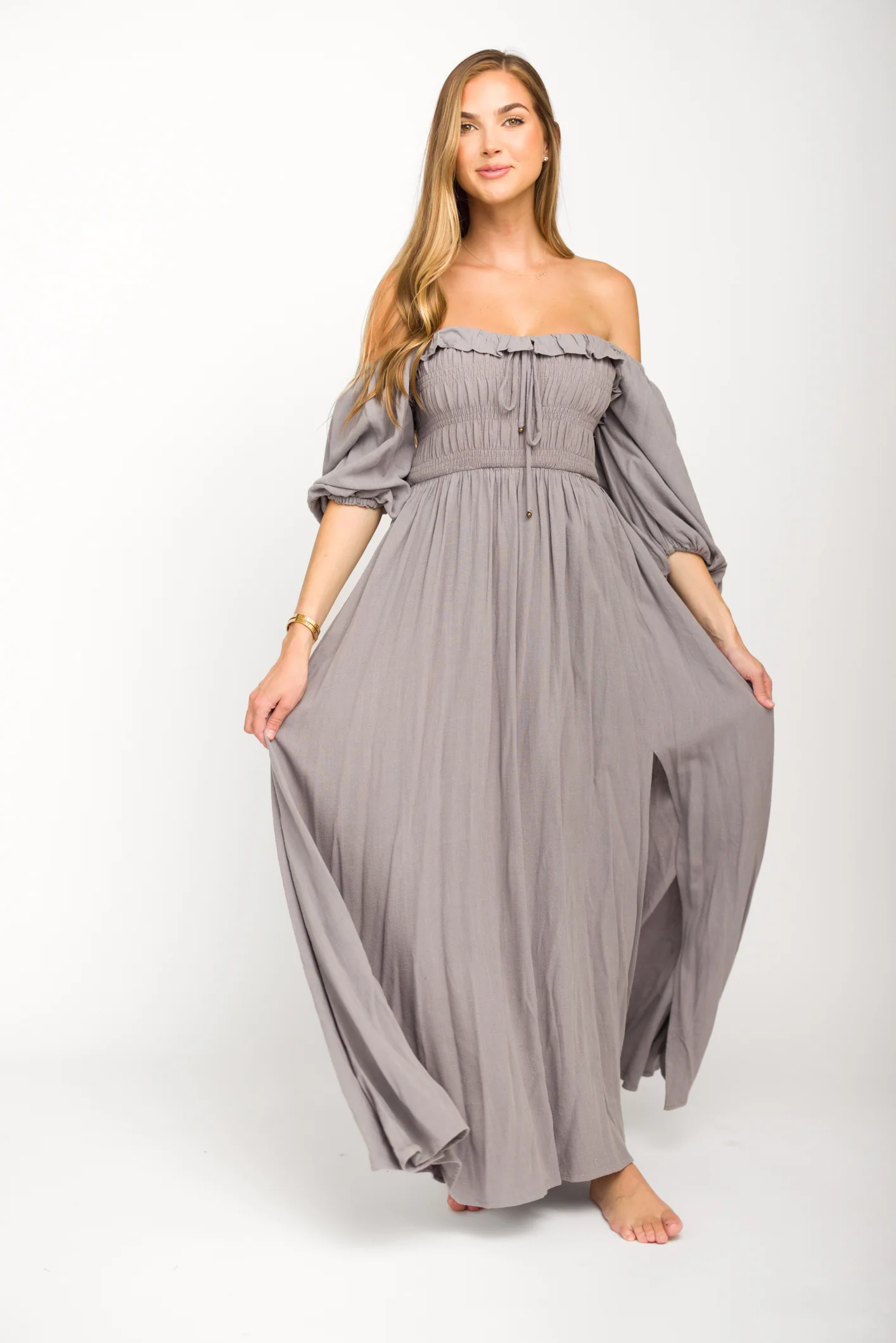Devon Smocked Maxi Dress in Slate Grey - Bump Friendly