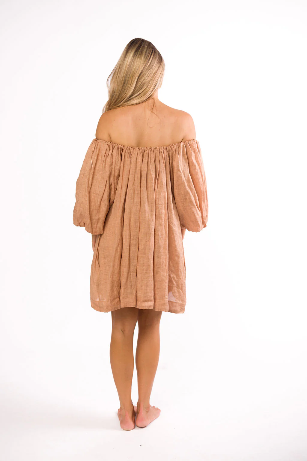 Cassidy 100% Linen On/Off Shoulder Mini Dress in Mocha