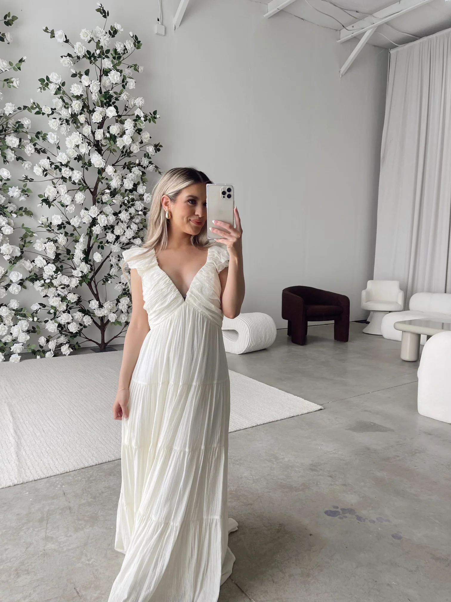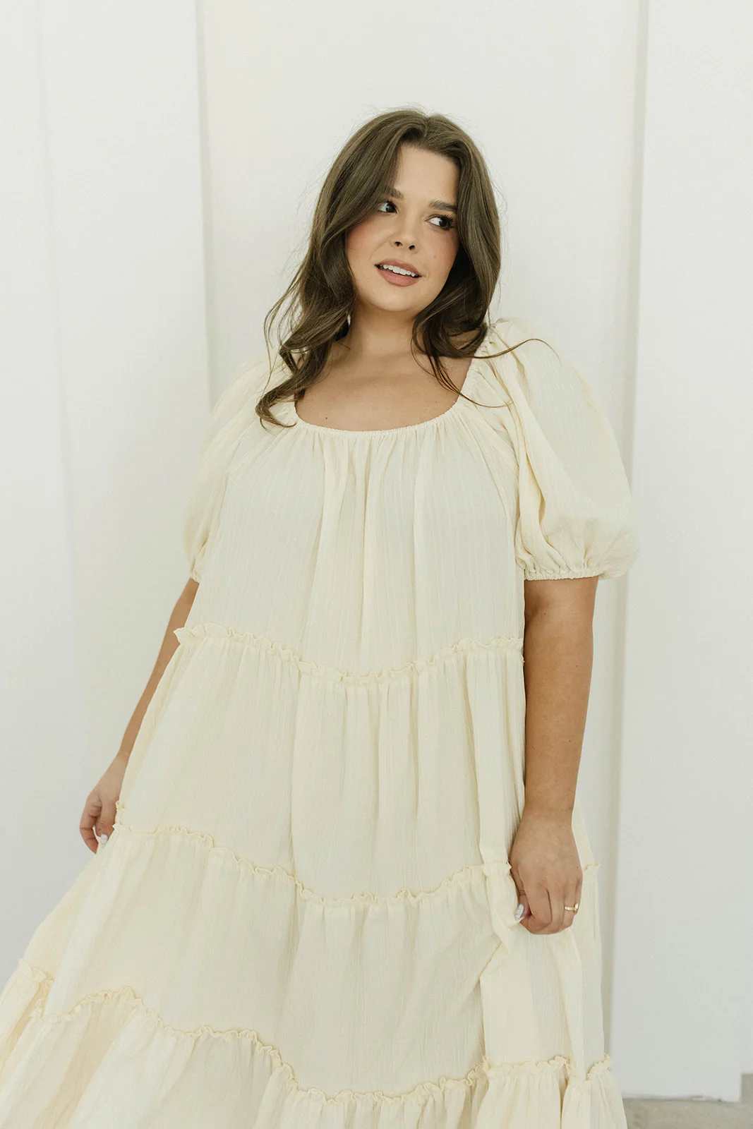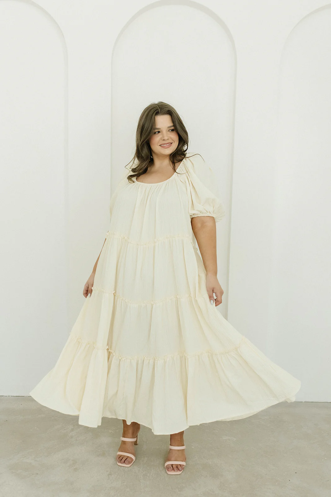 Eva Puffed Sleeve Maxi Dress in Cream - Bump Friendly & Inclusive Sizing (S-3XL)