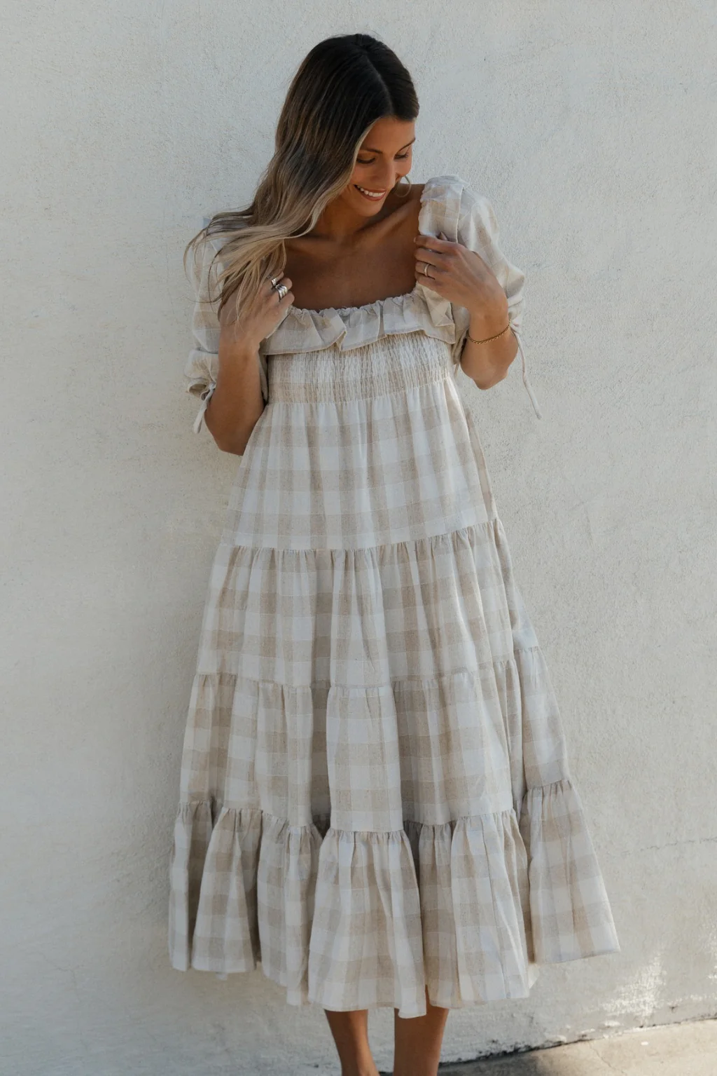 Clea Dress in Natural Plaid - Bump Friendly