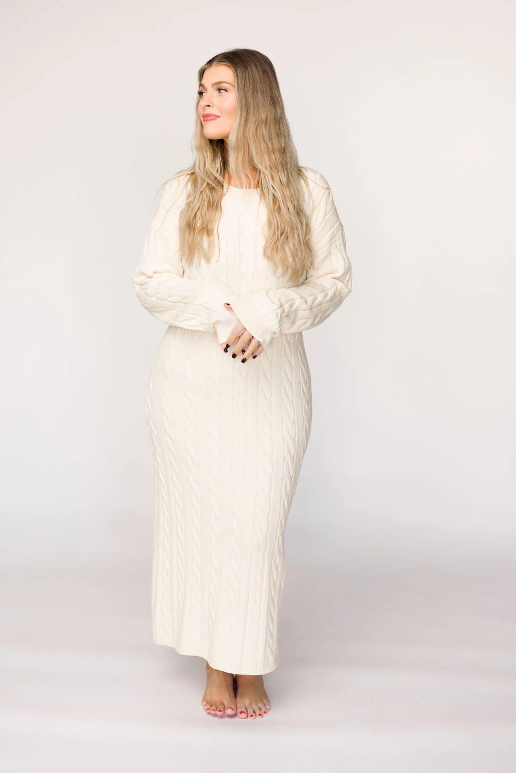 Winslet Cable Knit Maxi Dress in Cream (Almost Sold Out)