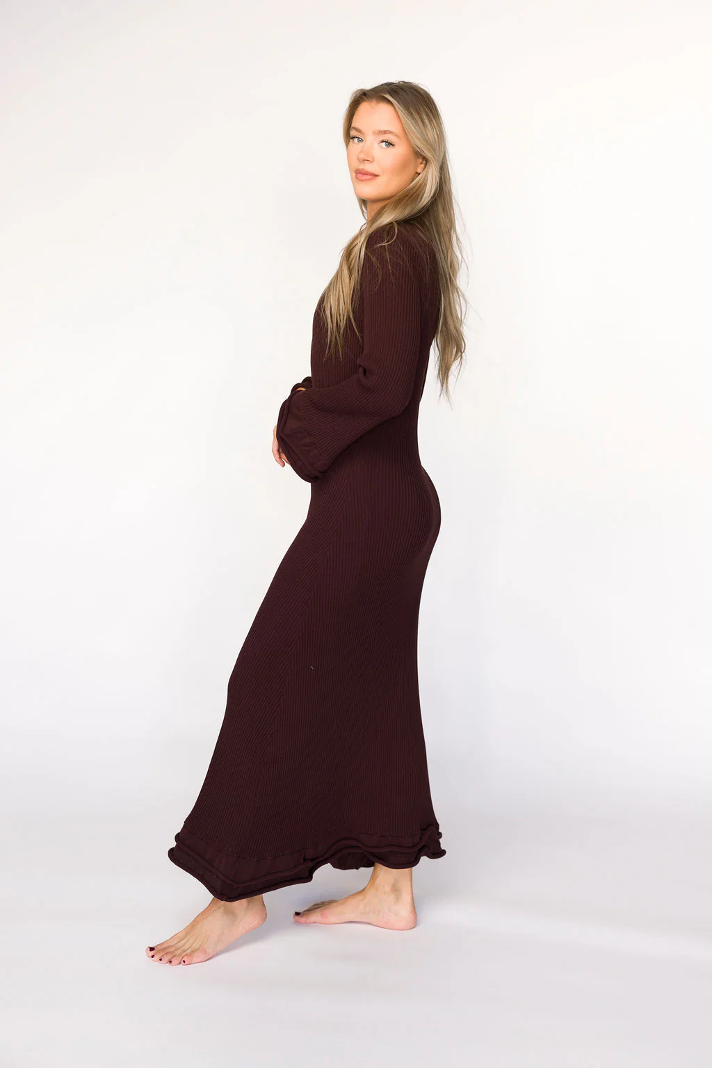 Darcy Square Neck Midi Dress in Brown - Bump Friendly