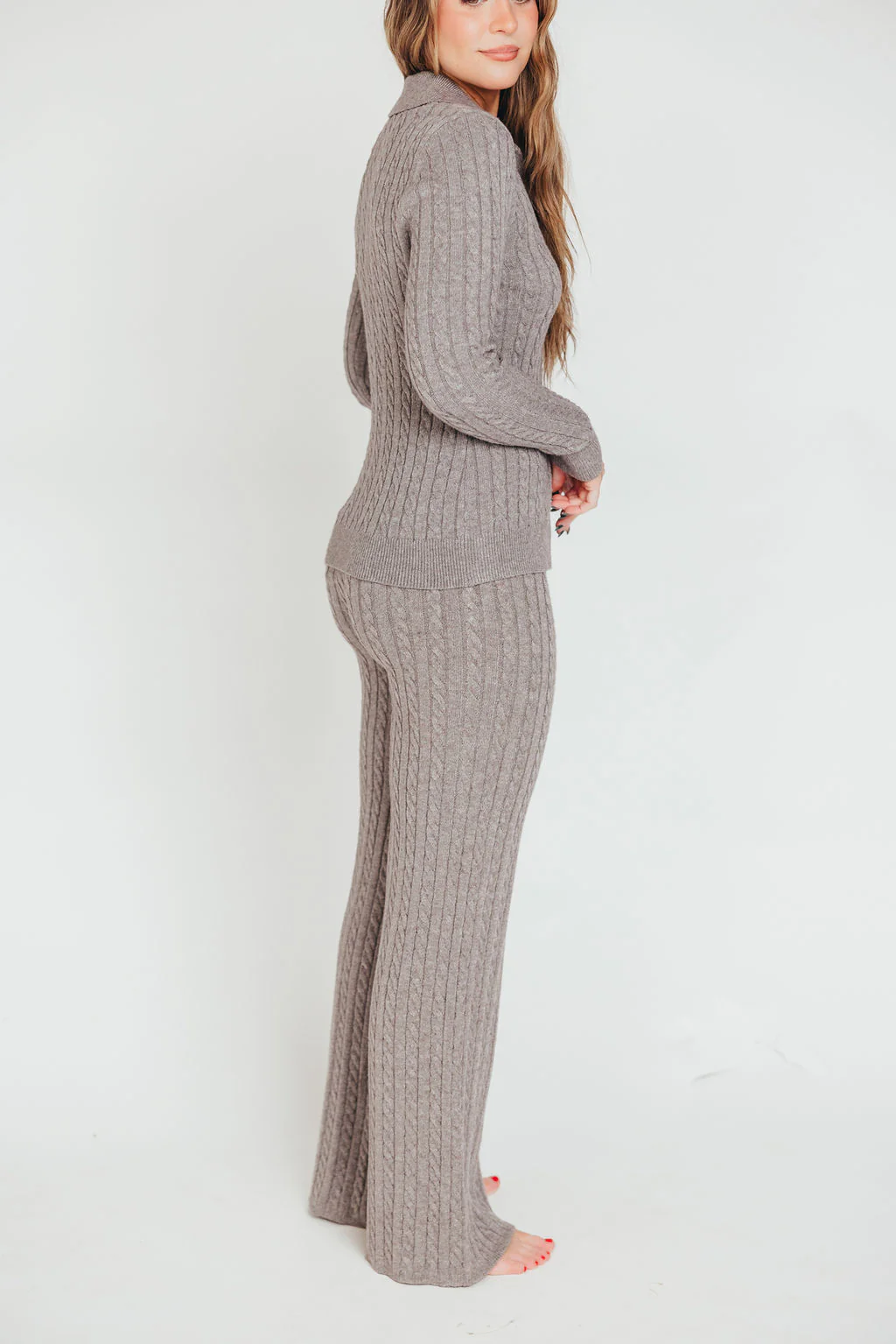 Premium Willow Cable Knit Pants in Greige