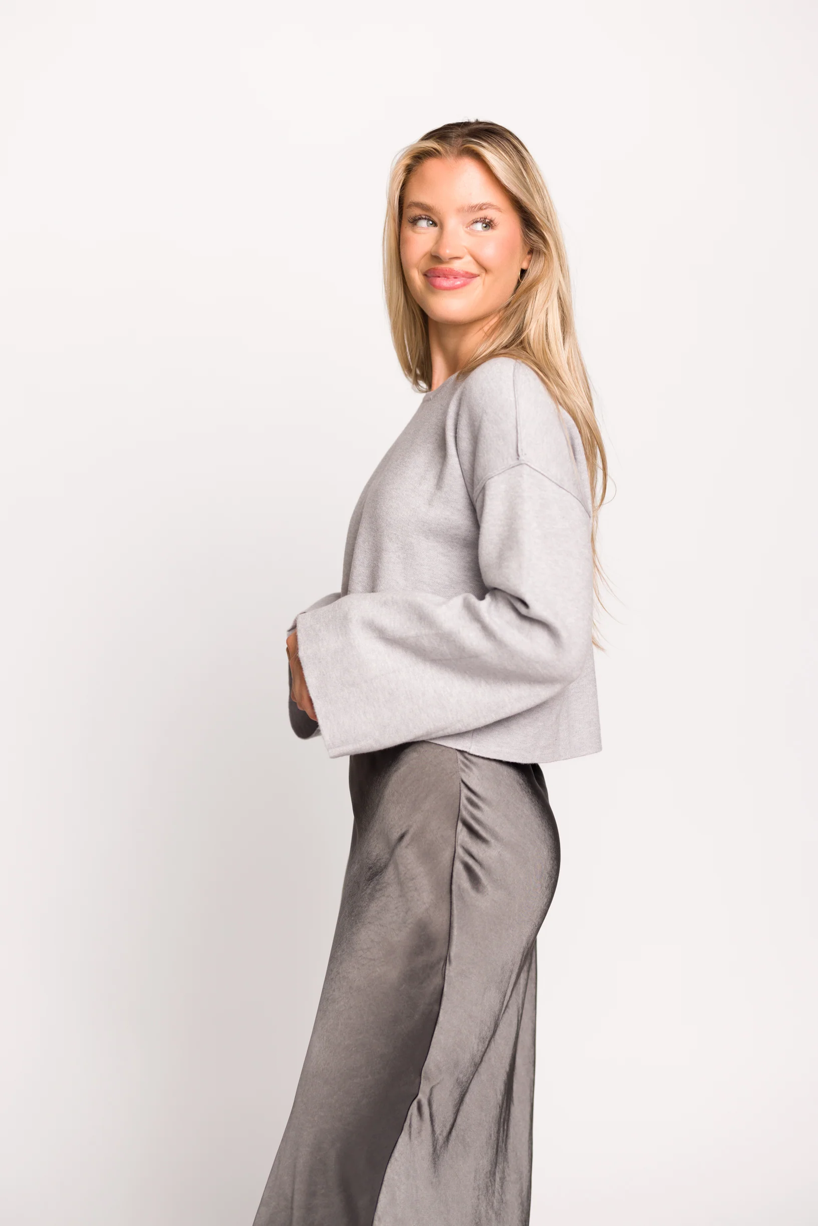 Maggie Cropped Knit Sweater in Heather Grey