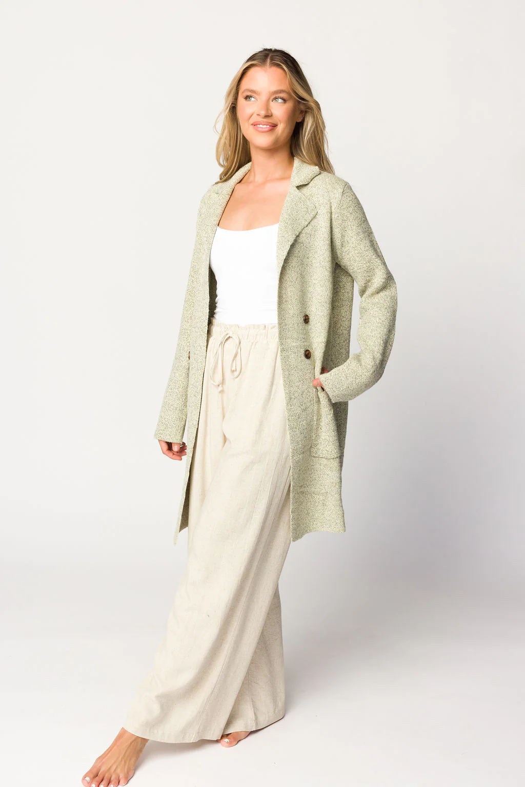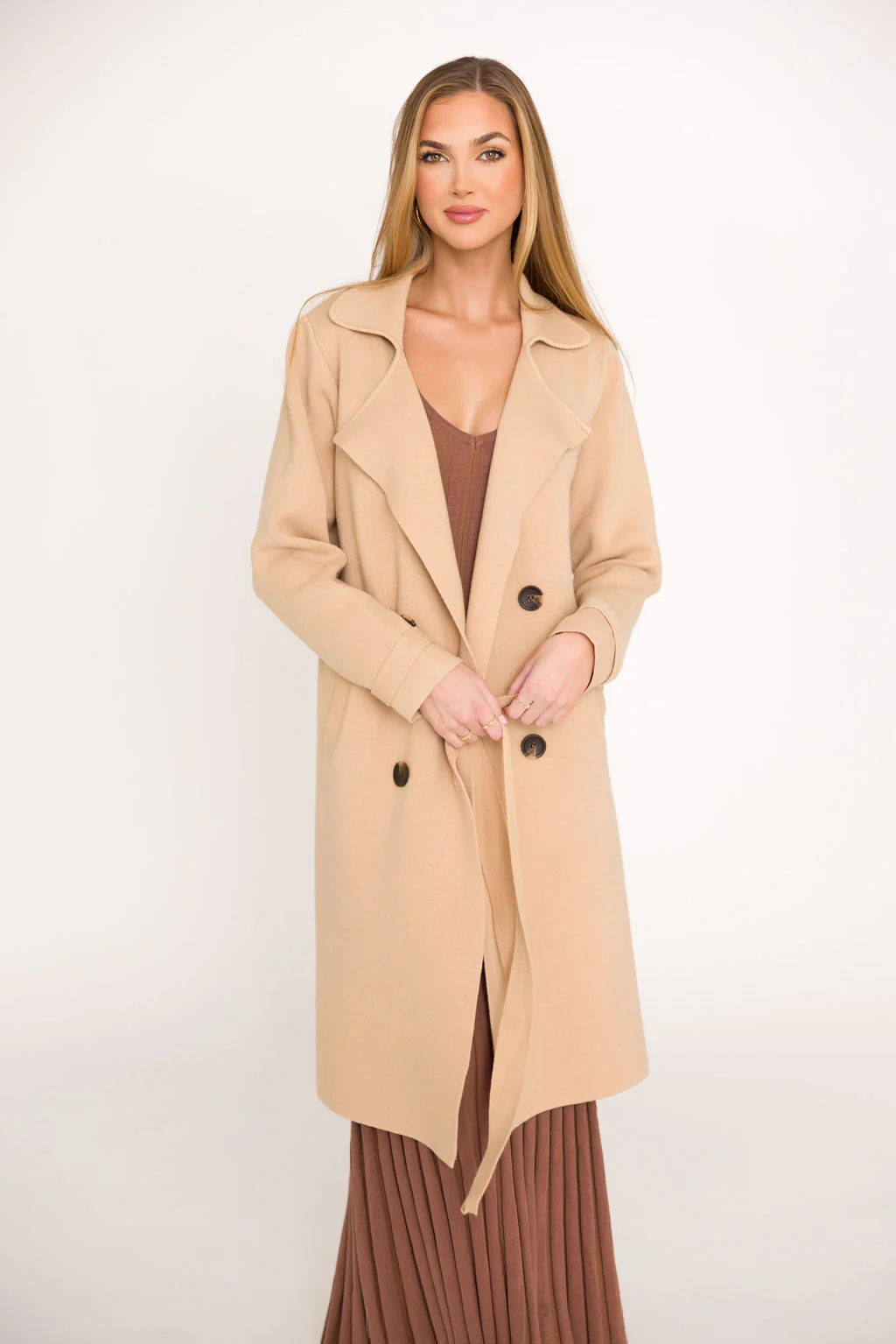 Reagan Double Breasted Knit Coat in Oatmeal