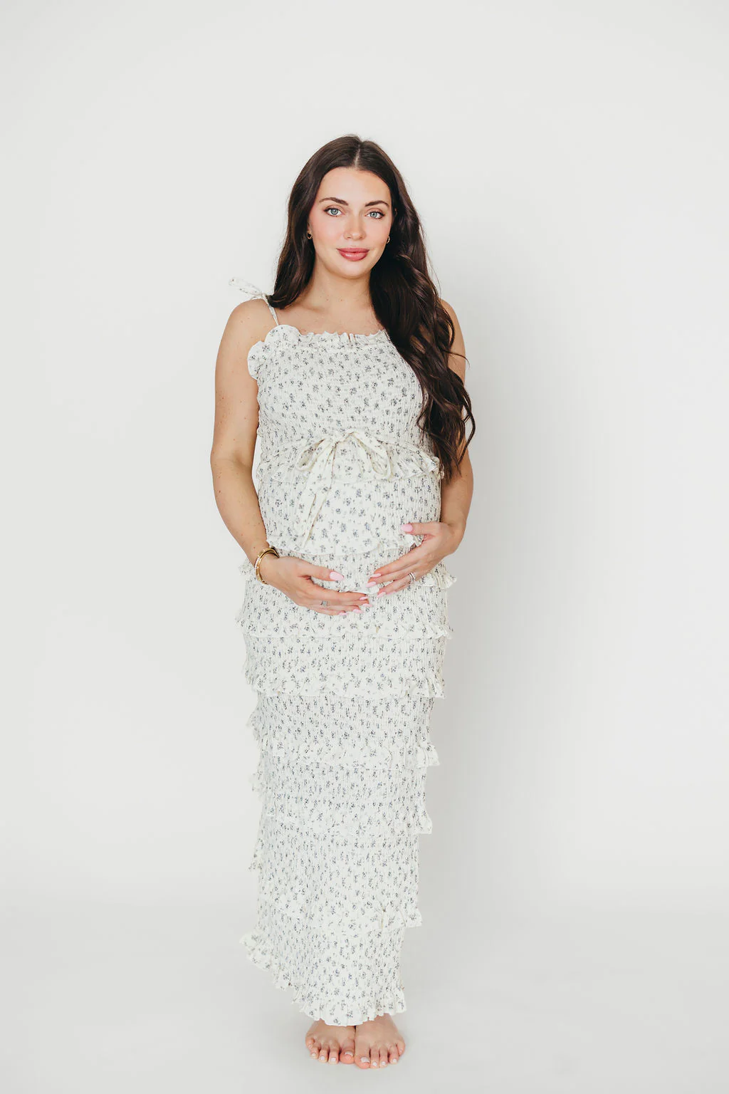 Harley Maxi Dress in Gray Floral - Bump Friendly