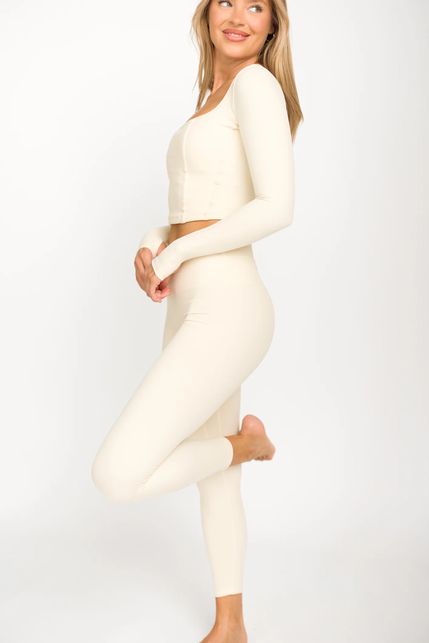 Kendra Long Sleeve Square Neck Corset Top in Cream