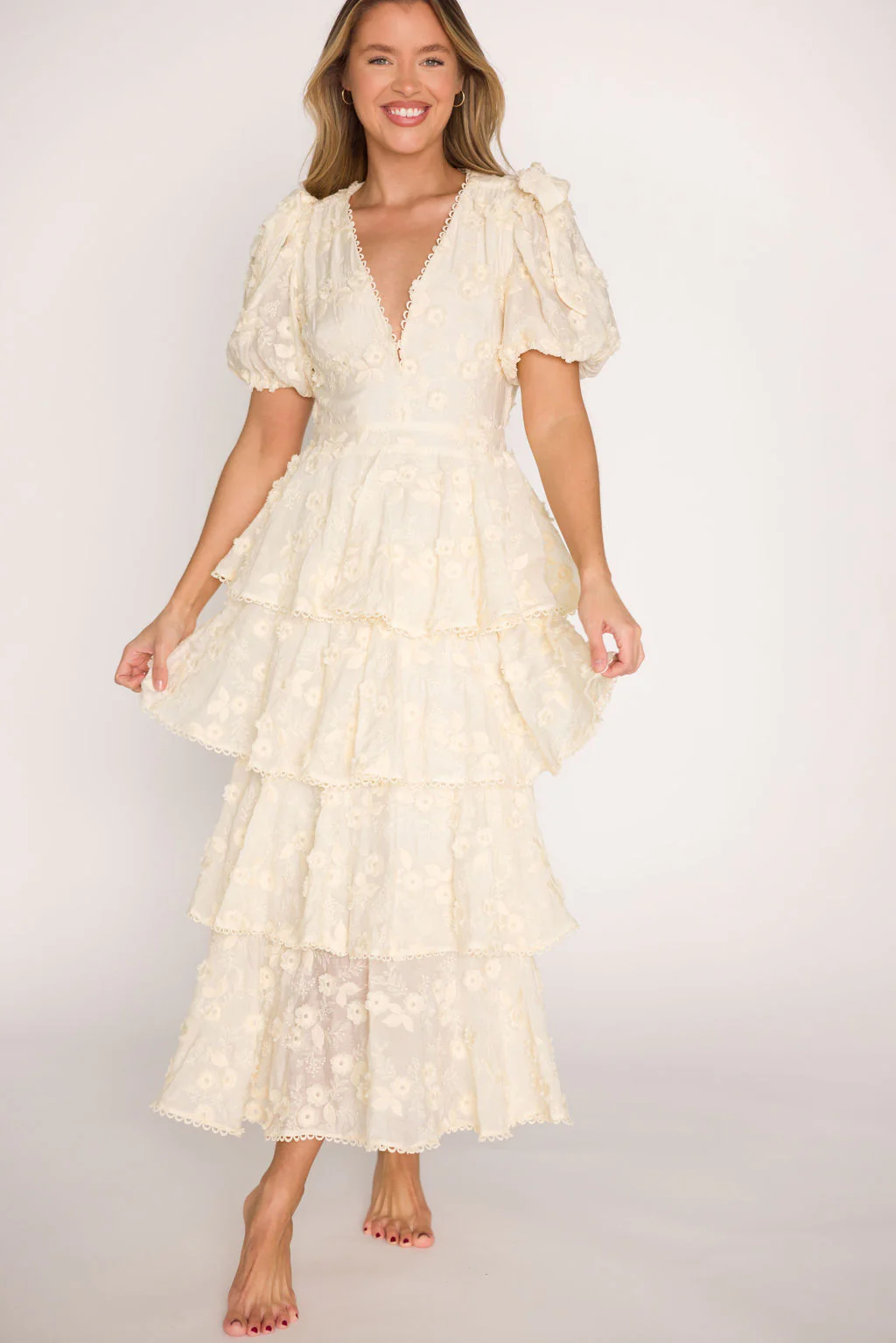Iris Puffy Sleeve with Bows Maxi Dress in Cream