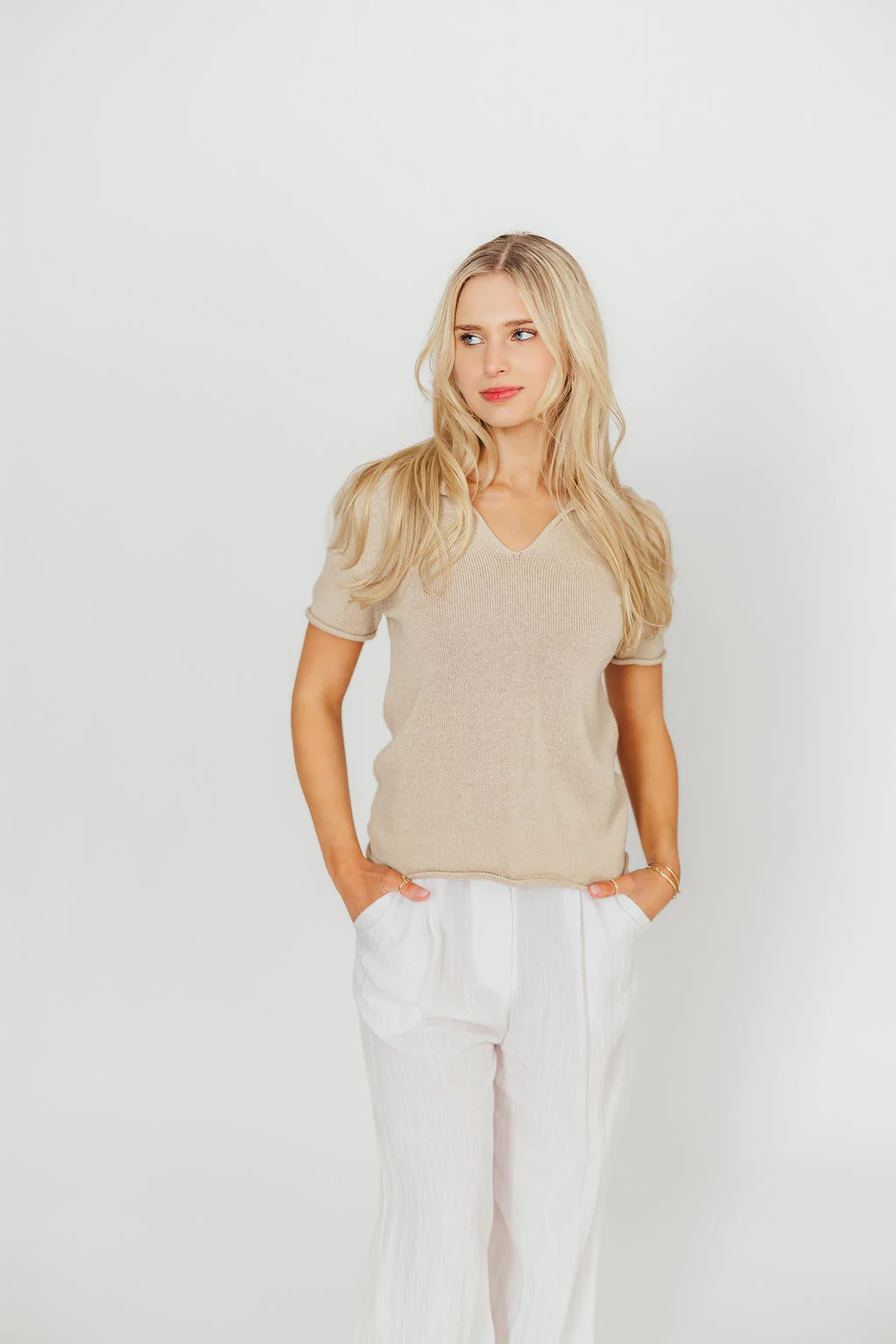Darcy Lightweight Collared Knit Top in Oat