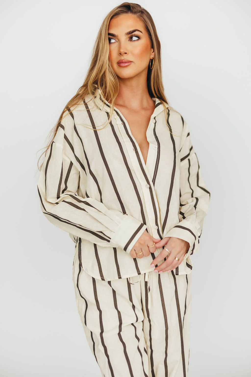 Sicily Button-Down Top in Beige Stripe - Nursing Friendly