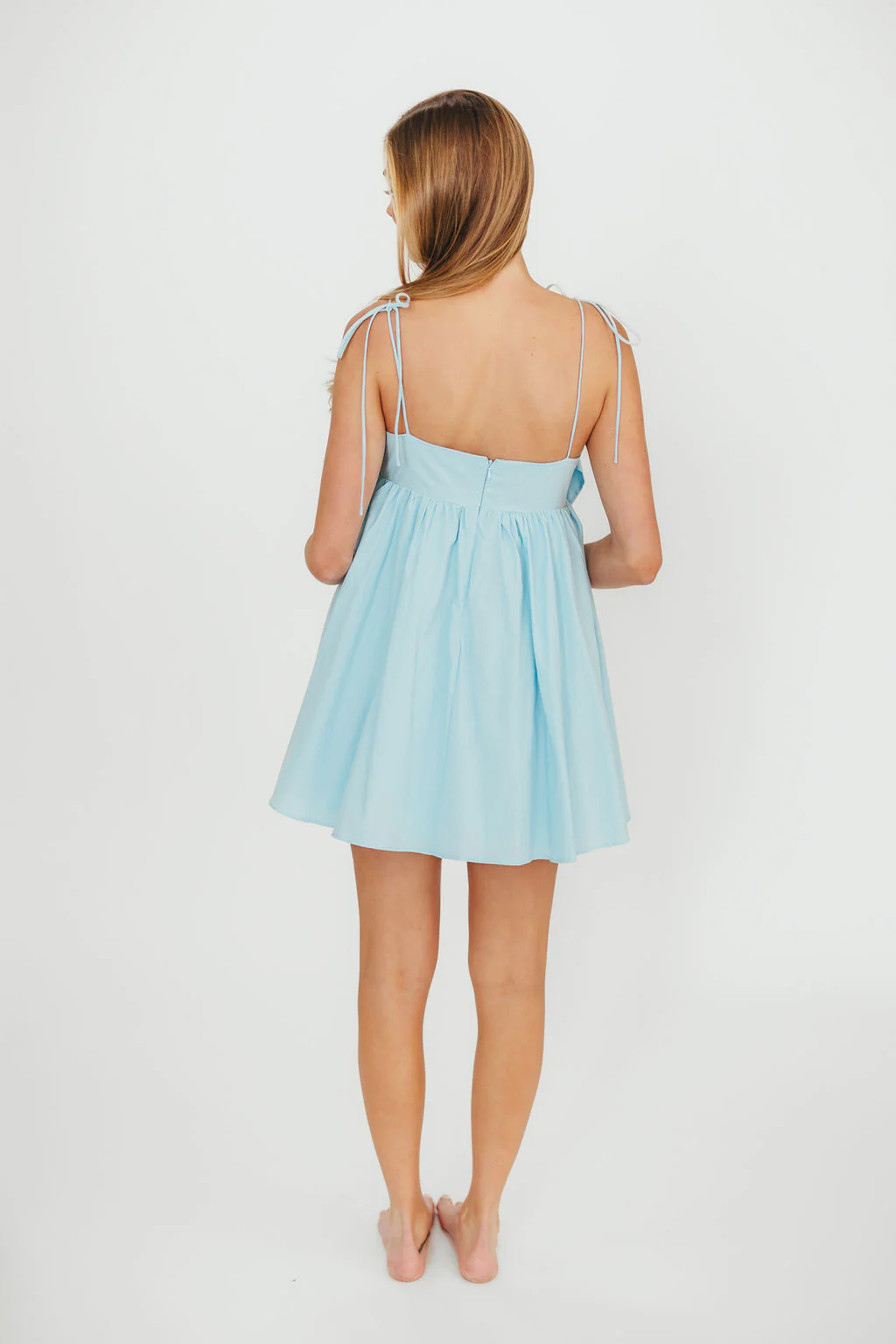 Irelyn 100% Cotton Babydoll Mini Dress with Bow Accent in Sky Blue