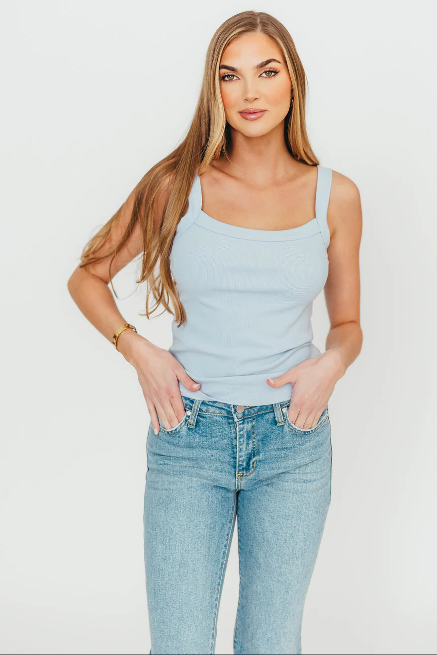 Wavey Cotton & Linen Top and Shorts Set in Powder Blue
