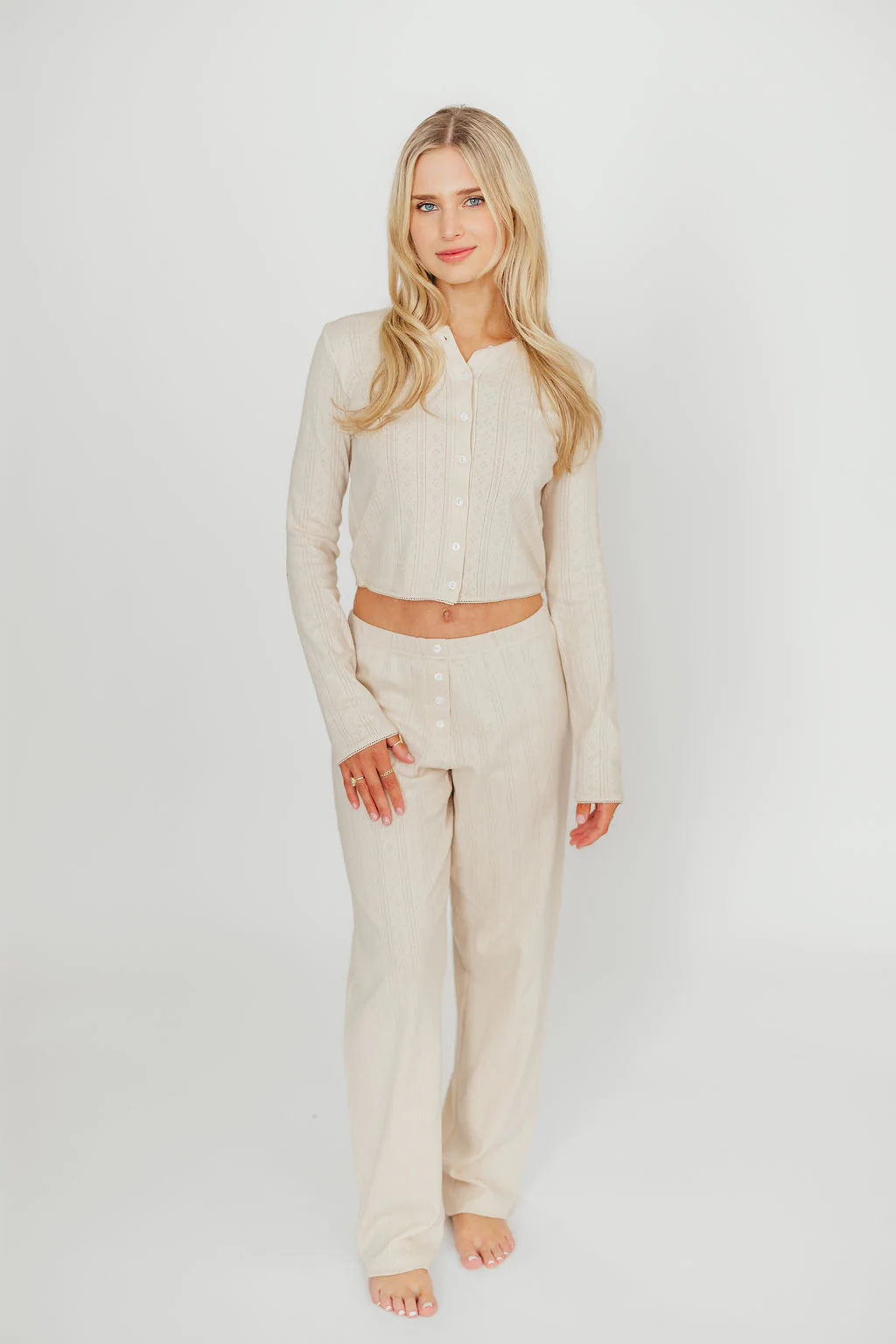 Ivey 100% Cotton Pointelle Cardigan in Cream