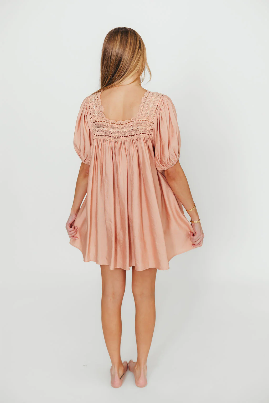 Dottie Lace Trim Linen-Blend Mini Dress in Blush