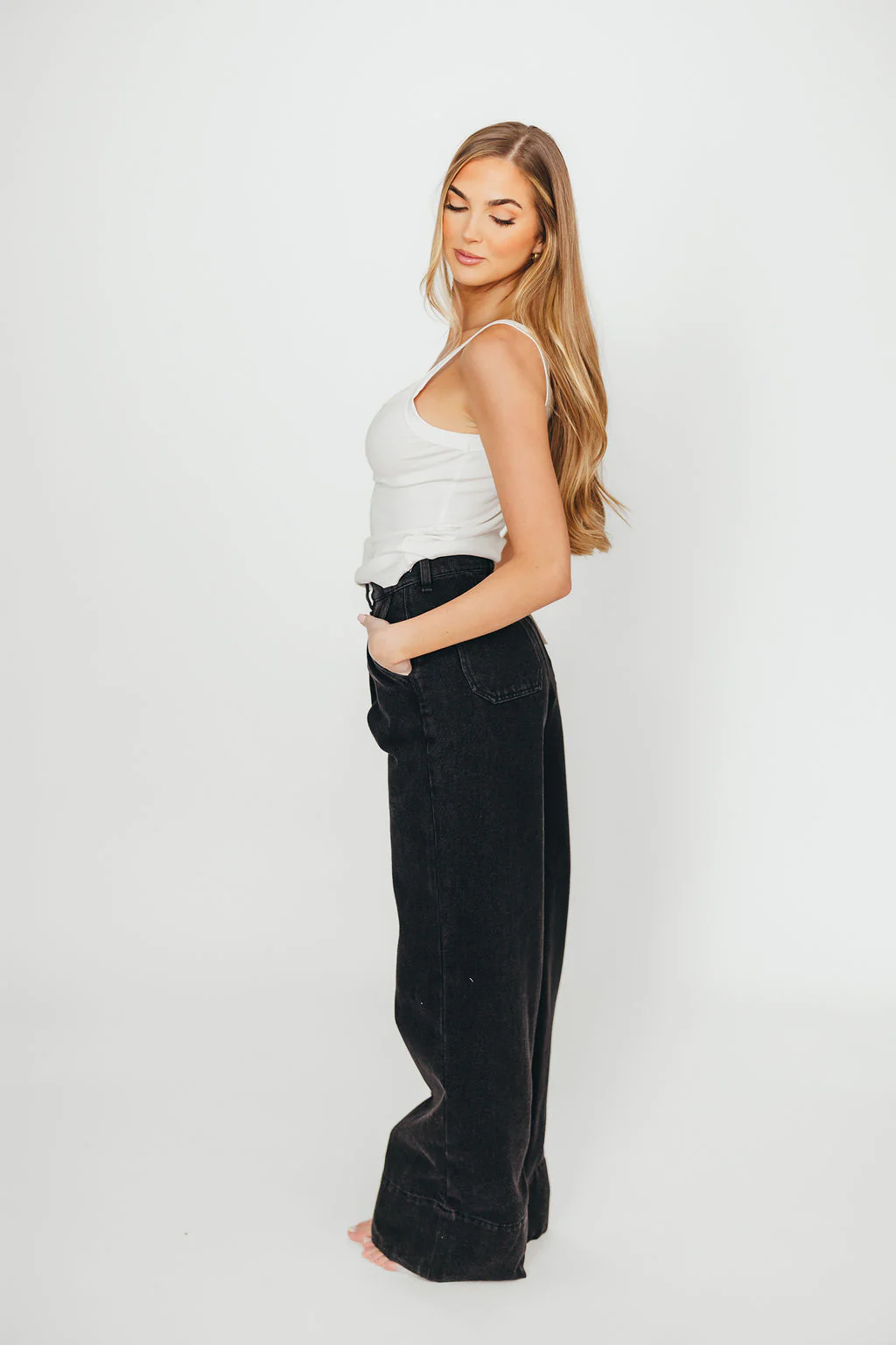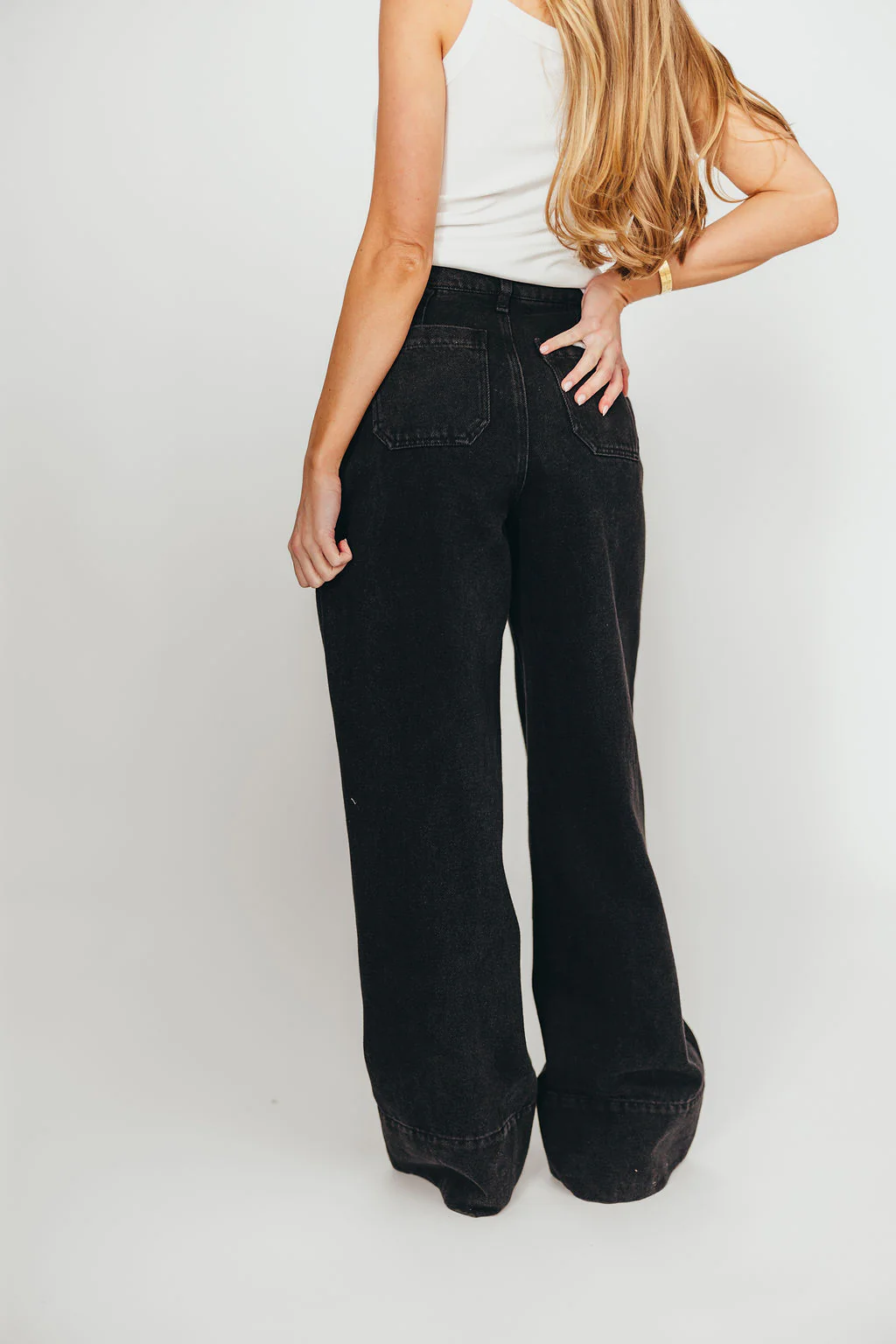 Anna High Rise Pleated Palazzo Pants in Washed Black