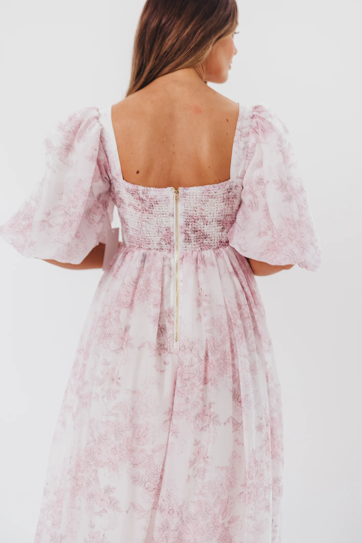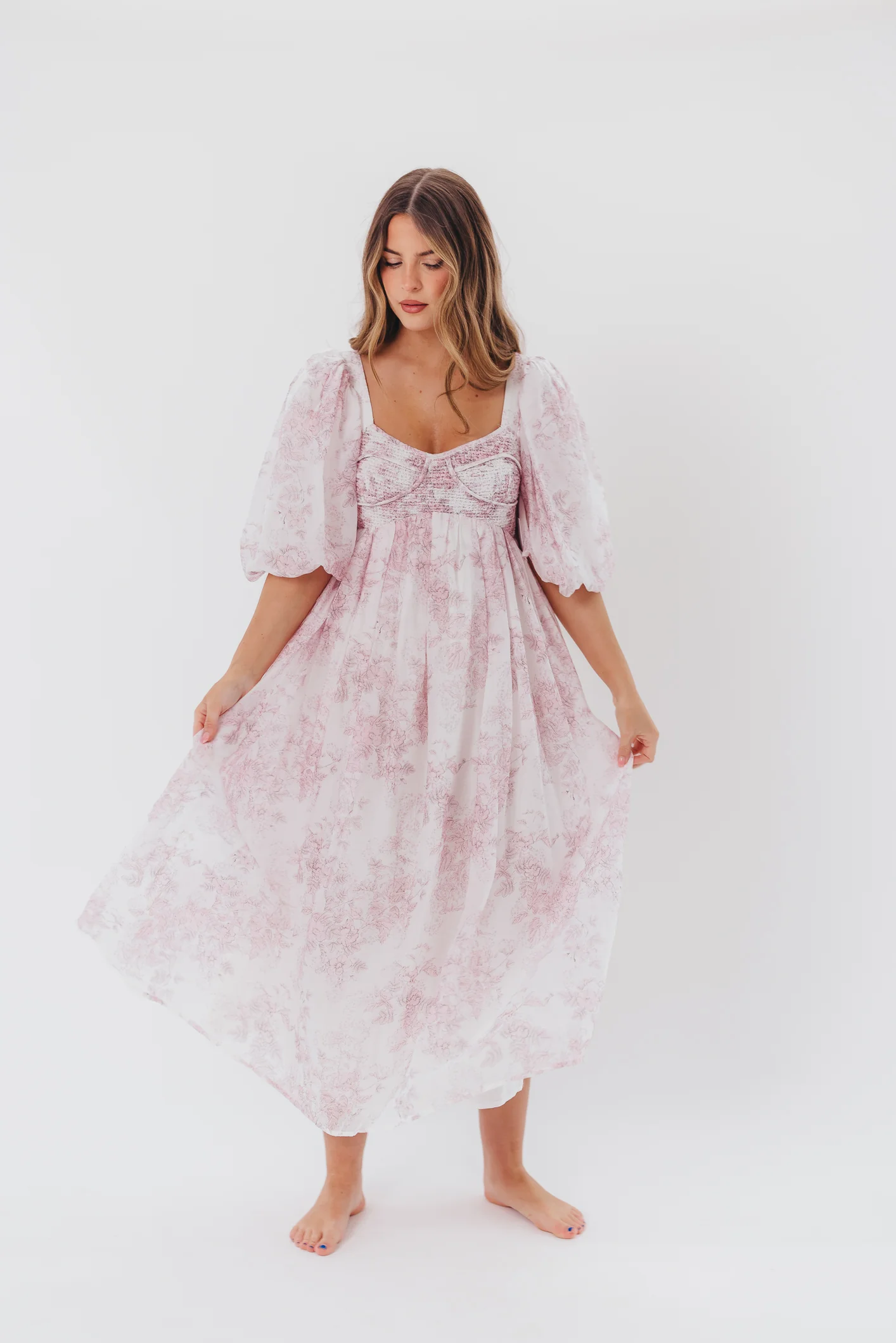 Elena Floral Print Smocked Midi Dress in Blue Floral- Bump Friendly - Sold Out Sizes Restock 4/19