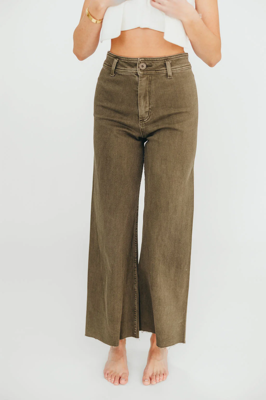 Corin Straight Wide Leg Denim Pants in Faded Olive