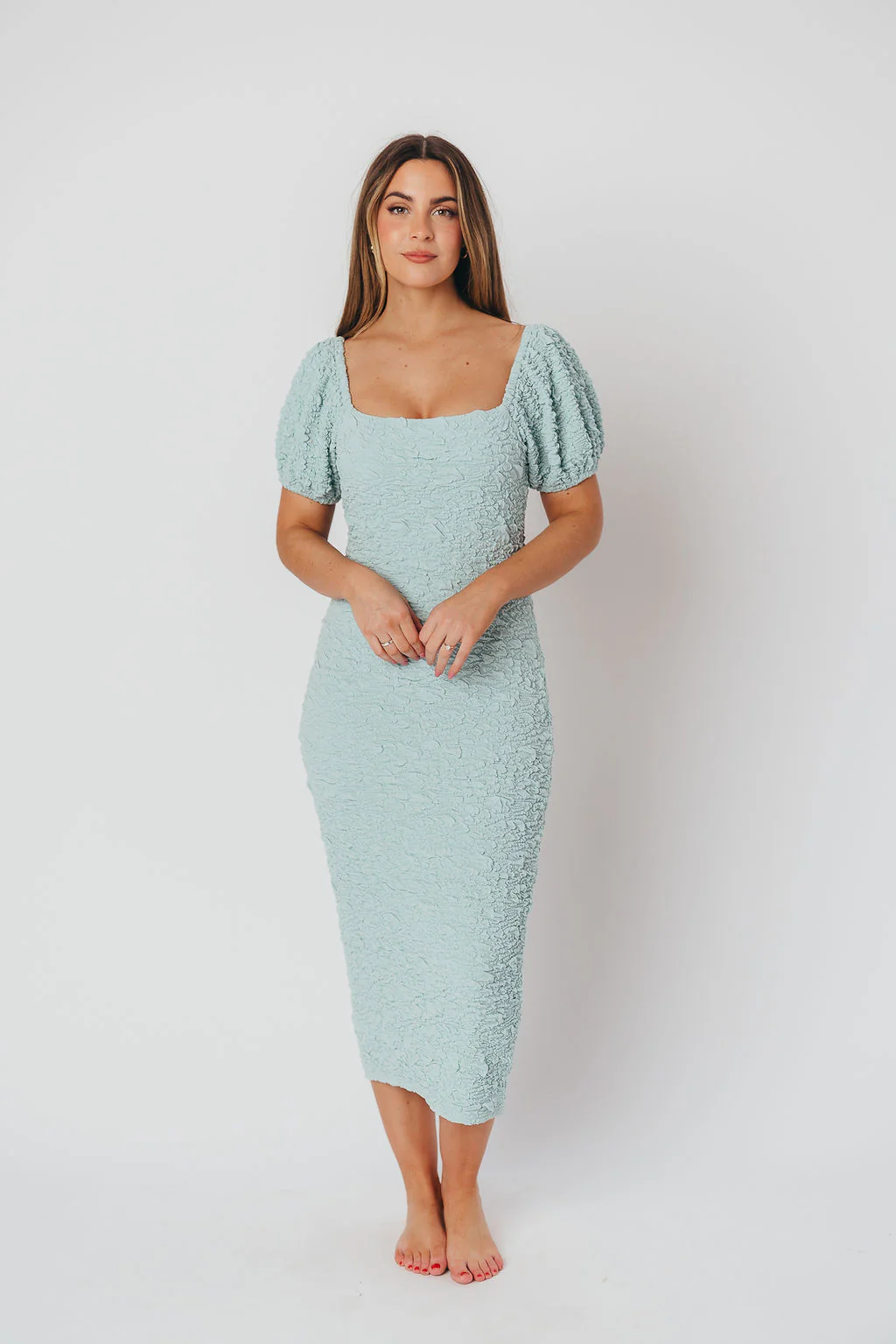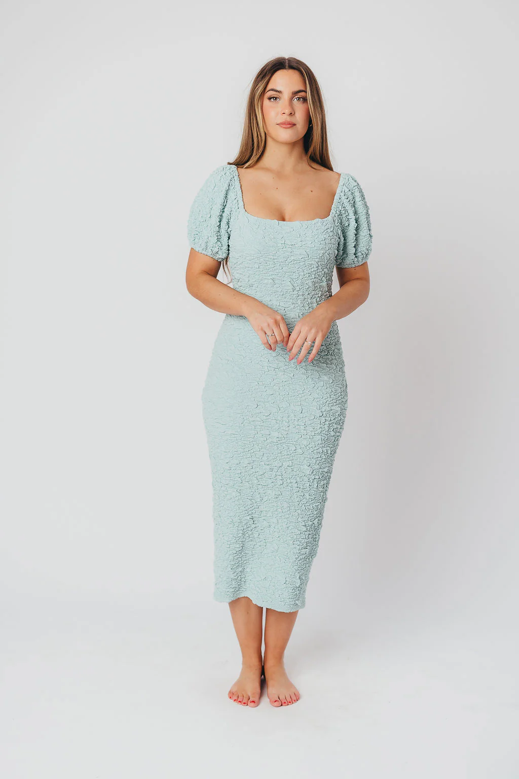 Blakeley Textured Midi Dress in Seafoam- Bump Friendly & Inclusive Sizing (S-3XL)