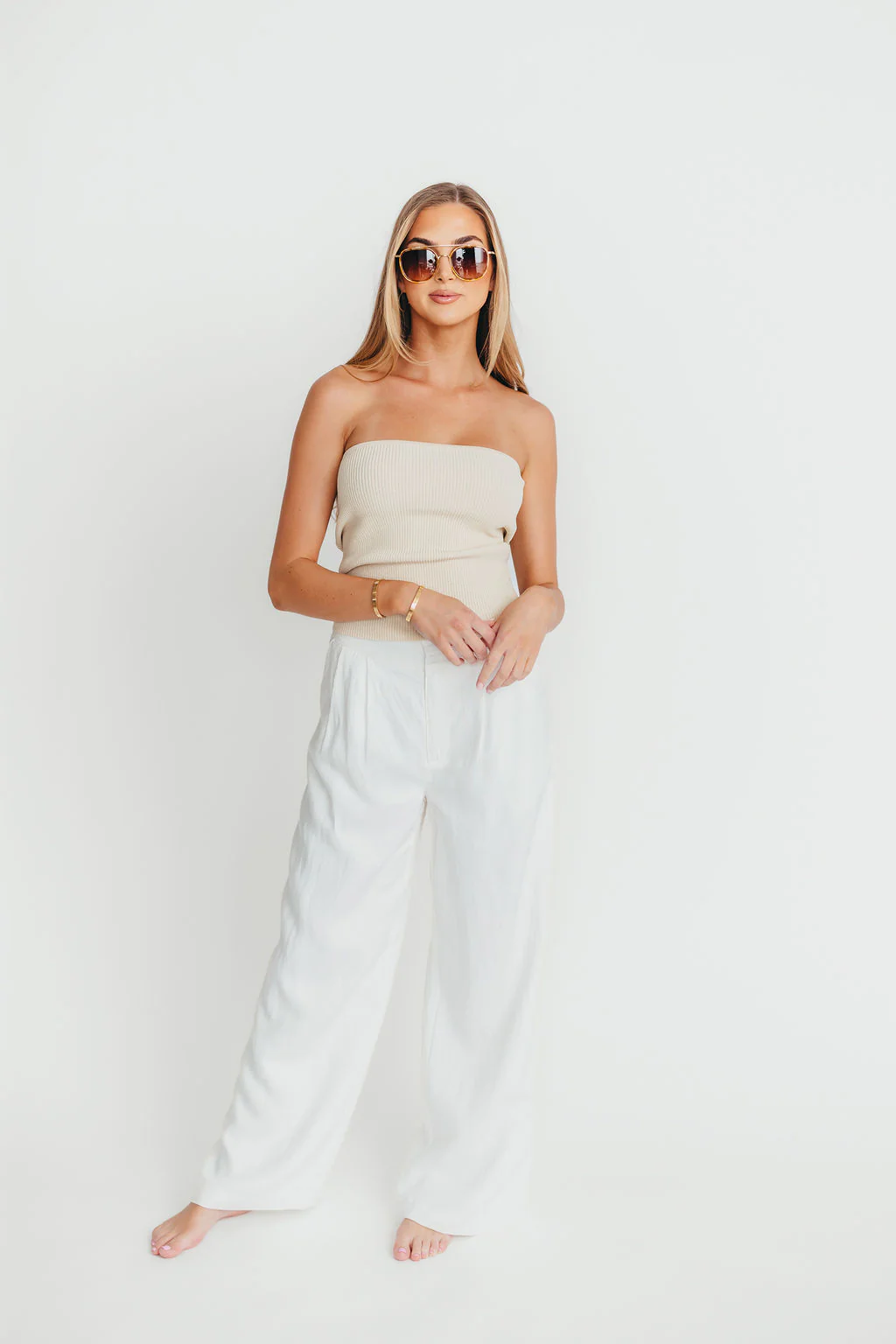 Carmen Ribbed Knit Tube Top in Cream