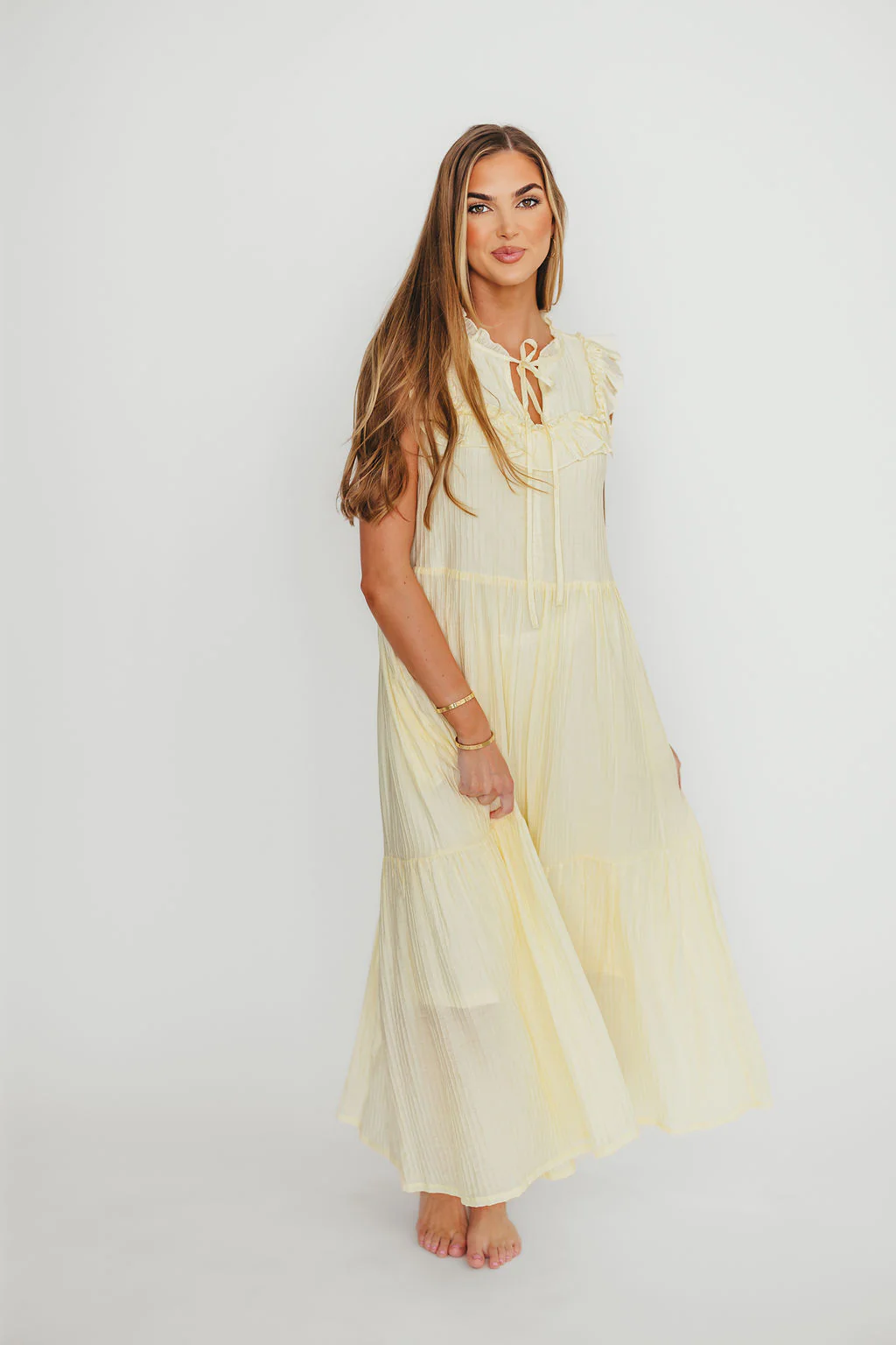 Brynn Ruffle Tiered Midi Dress in Ecru